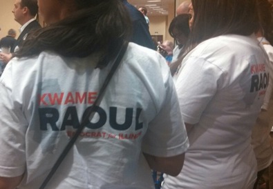 * From a friend who is at this morning’s Democratic County Chairmen’s brunch. If you can’t read the t-shirts, they say “Kwame Raoul, Democrat for Illinois”…