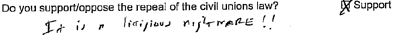 “It is a litigous nightmare!!” he wrote underneath his answer. It hasn’t really turned out to be that way, except for the lawsuit to overturn it and instate full marriage rights based on equal protection arguments.