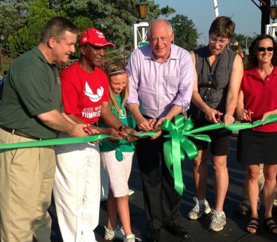 After riding Cooger & Dark’s carousel, Judy went to the ribbon cutting.