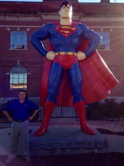 OK, I’ll stand here next to Superman so’s you can take the picture. But no way in hell am I going to wear the tights.