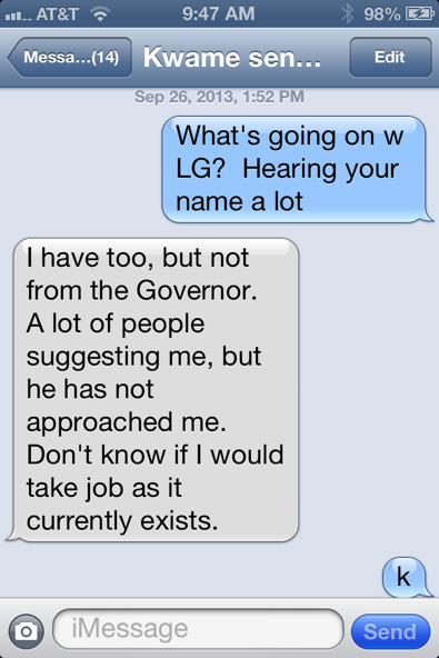 Willie if you are Kwame’s LT Gov pick, I’m with you.