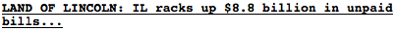 Or a 2006 JBT press release: “Even State Comptroller Dan Hynes - a Democrat - says Illinois backlog of unpaid bills is at an all-time high. Illinois is in that bad of fiscal shape, even though Blagojevich raided more than $2.2 billion from pension funds and borrowed more money than any Governor in Illinois history” http://capitolfax.com/2006/08/17/jbt-outlines-37-billion-in-cuts-over-4-years/