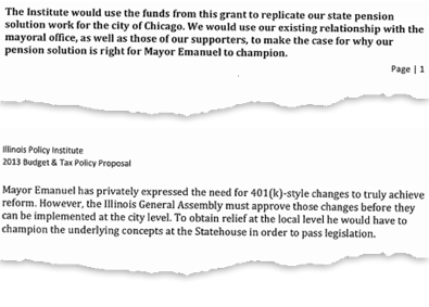 The institute plans to “leverage the leadership potential of Mayor Emanuel … as the spark for wider pension changes in Illinois.” It adds that “friendly legislators would be welcome to draft legislation modelled on our policy work and work in tandem with Mayor Emanuel to move it forward in the legislative process.”