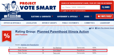 * Champion News dug up a 2003 Project Vote Smart report that claimed Sen. Kirk Dillard had a 100 percent voting record from Planned Parenthood Illinois Action…