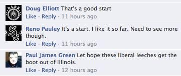 * Bruce Rauner’s Facebook posting about his plan has so far received 314 “likes” (way more than any of Gov. Quinn’s recent Facebook posts) and dozens of comments, including…