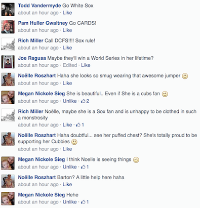 Not only does she look stunning in Cubbie blue, if she was inserted in the lineup the team’s on-base percentage might go up a smidge, a la Eddie Gaedel.