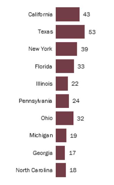 * A couple of charts. Statehouse reporters in the ten biggest states…