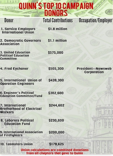 Pat Quinn has a lot money coming from people who are seeking special privileges from the state.