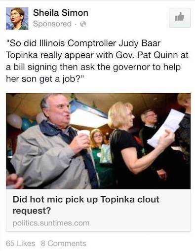 Good to know Sheila Simon is against the children of prominent Illinois politicians getting ahead based on their family name. Duly noted.