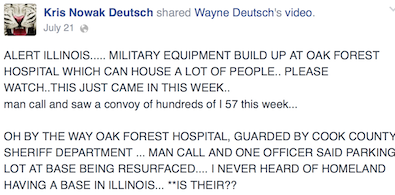 But to the general point about extremism and paranoia — there is blame to go around. Certain networks and websites obviously play it up, but certain candidates/elected officials in IL are equally guilty. One State Senator in particular seems more than willing to let the crazies rant on his Facebook page. An occasional word from electeds might help the situation.
