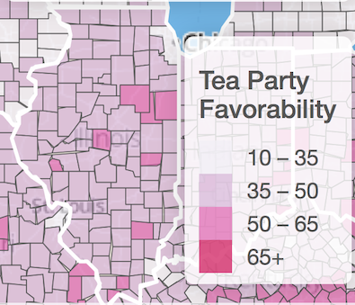 I notice the Tea Party ratings in the Chicago metro area are relatively high compared to the poor ratings for the TP in the Des Moines region and the downright dismal ones for Minneapolis-St. Paul. Same pattern holds in the rural parts of the state too compared to Minnesota and Iowa. Is Illinois ripe for a conservative shift?