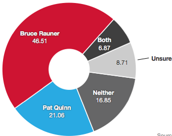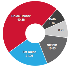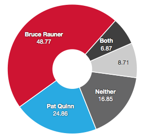 The survey also has Rauner with a steep advantage among independents. The poll found that nearly 54 percent of those swing voters chose the Republican candidate, compared to nearly 32 percent for Quinn.