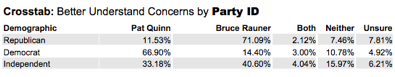 A deeper dive into the head-to-head data in the poll between Rauner and Quinn shows that the Republican is outscoring the incumbent among both men and women. Rauner also appears to be doing surprisingly well among those who identified themselves as Democrats, spelling potential trouble for the governor.