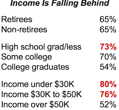 Anyone who’s lived through the 90’s would think today is financial armageddon. It’s hard to adjust your lifestyle downward and those non-retired folks still want. Retired folks with real places for their cash, like medical costs now and sure to come in the future—-they have reason to be worried about the future. With 2 candidates running for governor who seem to want to make it even harder for older people to function financially, well, no wonder the angst.