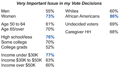 * “How important is this issue in helping you make your voting decisions this year? - Helping older people and the disabled live independently.” 79 percent said it was important, with 65 percent saying “very important”…