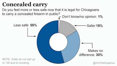 makes sense in some respect. There has always (or really the last couple of decades) been an anti-gun lean in Chicago. 55% feel less safe, but really, they dont know that it isnt the licensed CCW folks that are shooting up the south and west sides daily.