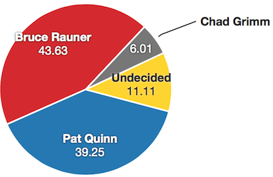 * A new Reboot Illinois/We Ask America poll has Bruce Rauner leading Gov. Pat Quinn by eight and a half points, 45.5-37 with 7 percent going to Libertarian Chad Grimm. That’s down from Rauner’s 14-point lead in late July’s poll. Grimm may be having an impact here.