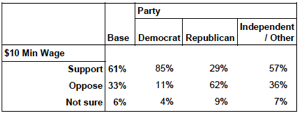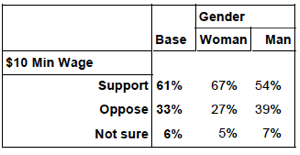 For everyone else: so 74% think they could not survive on minimum wage, but only 61% support raising it? I’d really love to hear what those 13% who think the minimum wage is too low but don’t want an increase think adults who earn the minimum wage should do. How much you want to bet that most of that 13% also want to cut food stamp, housing, and welfare assistance?