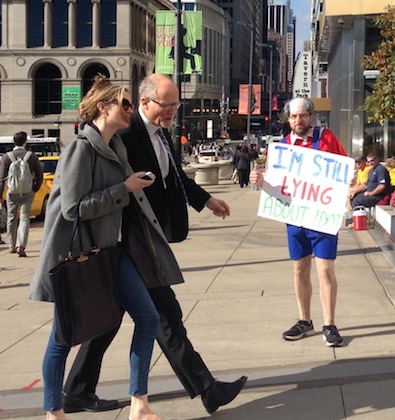 “We prefer to keep these things quiet” Rauner campaign manager Chip “Genius” Englander told reporters after being asked about the man with the sign but no pants.