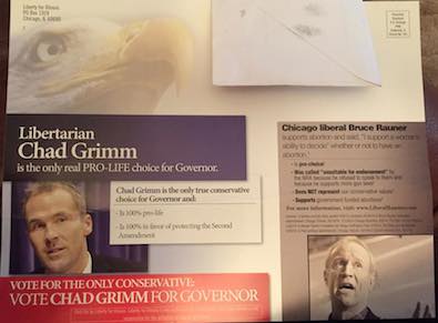 Rauner fought like crazy to keep Grimm off the ballot and is sending negative direct mail on him.