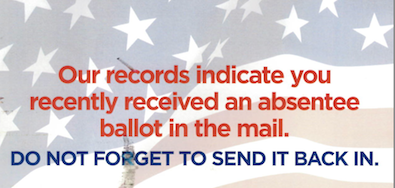 Our records indicate that you OR CURRENT RESIDENT recently received an absentee ballot in the mail.