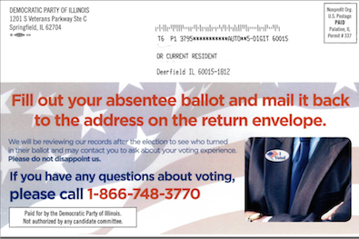 * The Democratic Party of Illinois has a really creepy early voting mailer…