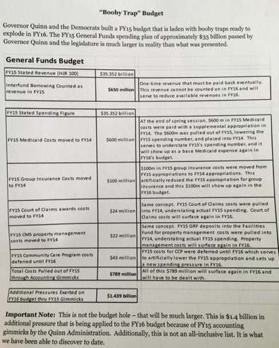 Guy, if you’ll google the May 31, 2014, Trib, you’ll find an article by Pearson, Garcia and Long where Rauner goes on and on about the “phony,” “dishonest,” budget that had just been passed.