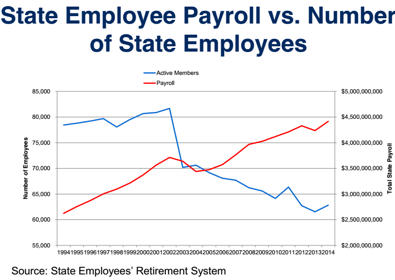 ===Spending on wages and benefits for state employees has to be brought under control. “There has been a decline in the number of state workers. But the payroll is still going up. I still don’t totally understand this. I think it’s a lot of overtime or manipulation ===