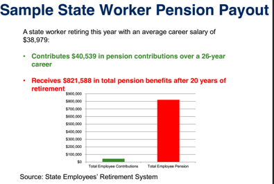 The State Worker Pension Payout chart doesn’t take into consideration the employer contribution or compounding interest returns over the course of the persons service and retirement.