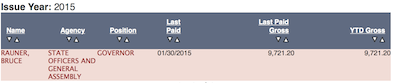 By the way Anon, state officers, agency directors and other positions paid via the state officers payroll at the Comptroller’s Office are paid one a month. So you only multiply those amounts by 12. I’m assuming that the monthly salary for the Governor for January was pro-rated since he was not Governor for the entire month.