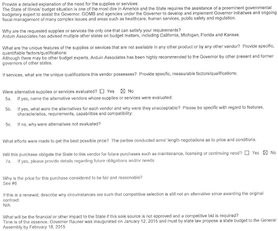 This is a good move for Rauner to ingratiate himself with the National GOP clown car crowd. This could also be good for Arduin’s firm since they may just be able to recycle the generic ideological report submitted in other states (with few hours expended for the $120k payment).