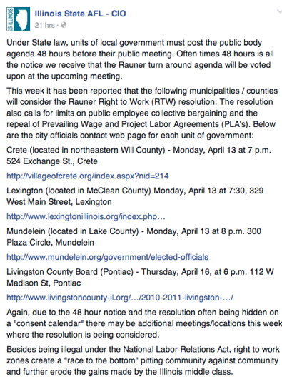 * From the Illinois AFL-CIO’s Facebook page since yesterday…