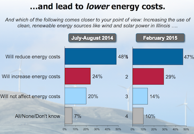 Seven in ten strongly favor increased energy efficiency as a way to meet Illinois’s future needs, and majorities back increased use of a number of renewable sources, including solar and wind.