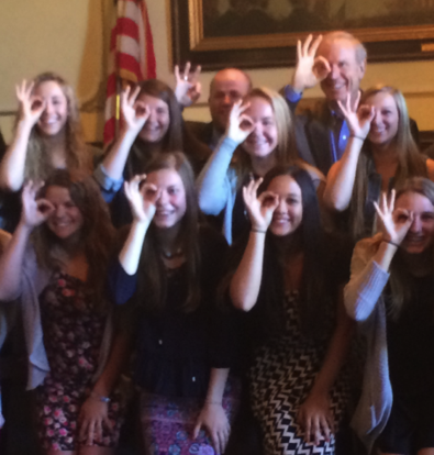 high schoolers explaining to the Governor how many Senate votes he needs. they left out other pic with double goose eyes for the House.