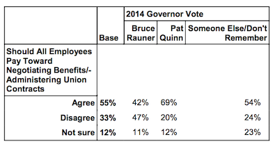 Not sure 4%Illinois law does not require anyone to join a union, but allows labor and management to agree that union represented employees must pay at least a fee sometimes called ‘fair share’ to cover the costs associated with bargaining the contract that benefits all employees. Some people believe that all employees who receive benefits as a result of collective bargaining should be required to pay something toward the costs of negotiating those benefits and administering union contracts. Governor Rauner does not agree that everyone represented by a union should pay something toward negotiating those benefits and administering union contracts. Do you agree or disagree that everyone represented by a union should pay something for negotiating and administering union contracts?