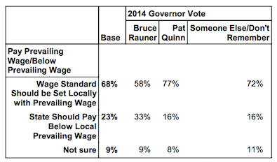 Not sure 12%The Illinois prevailing wage is a rate based on local wage standards for workers on public works construction projects. Governor Rauner wants to allow the state to pay workers lower wages than the prevailing wage in local areas, since it would save the state money. Others say the state should not undercut local, middle class wage rates because it drags down everyone’s incomes and hurts local business. Which comes closer to your view: that the wage standard should be set locally with a prevailing wage, or that the state should pay below the local prevailing wage?
