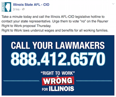 * No local updates appear on the Illinois AFL-CIO’s Facebook page today, but there is this…