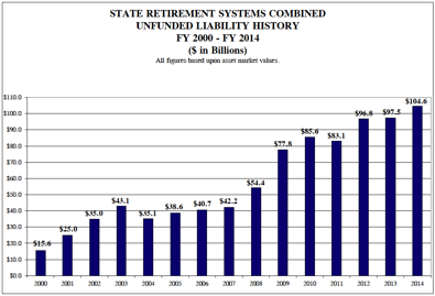 For the four years from 2011-2014, during which income-tax hikes brought in an additional $31 billion in revenue for pensions and the Standard & Poor’s 500 index rose for a net gain of 64 percent, the state’s total unfunded pension liability still rose by a staggering $35 billion. These are the makings of a completely broken system.