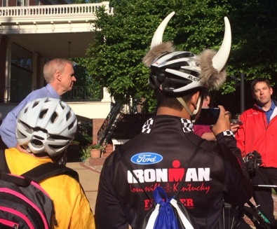 Wanted to give some props to the Governor and Rep. Tim Butler for addressing the Curb Your Car Crowd at the Governor’s mansion. The Governor didn’t ride, but said he would if we could find him a seat that didn’t hurt his tookus. (My word, not his)
