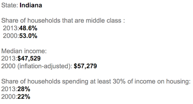 Actually, you need to know what “classes” to which the households migrated. For example, what if those 4% of households in Illinois that left the middle class in Illinois ascended to the “upper class”? Or did the 4% in Illinois drop to the “lower class” while the 4.4% in Indiana go to the upper class? It sure makes a difference in judging whether a shrinking middle class is a good thing.