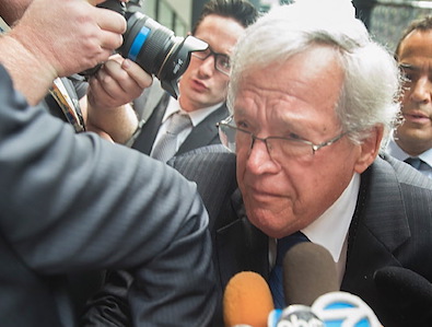 Hunched and tight-lipped, he was ushered into the elevator, ignoring shouted questions. There will be a lot of that in the months ahead, if the plan is to go to trial. But Hastert already looks like he’s doing time.