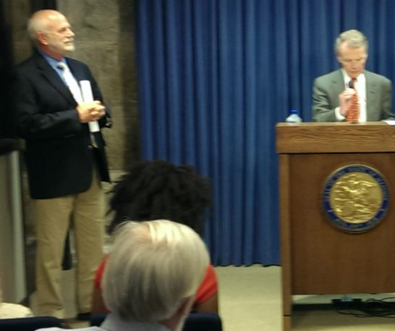 Mr. Brown is holding a copy of a news report faxed directly to my office this morning, claiming that Governor Rauner will cease his anticipated negative advertising blitz if I re-establish contact with his office. I would ask the Governor to listen closely because here is my answer…