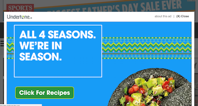 * Within what seems like milliseconds, an overlay ad covers our screen…