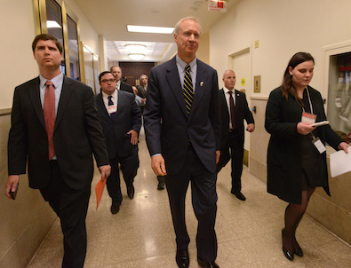 Gov. Rauner prepares, with his two squires, to enter the lion’s den; Chicago’s City Council chambers