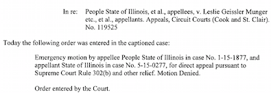 Of course, if the Cook County Circuit Court does the TRO correctly, it will be back in the 1st District Appellate Court and possibly on to the Supreme Court all of which will take time but suppose the Supremes say payment was inappropriate. I wonder what order might follow.