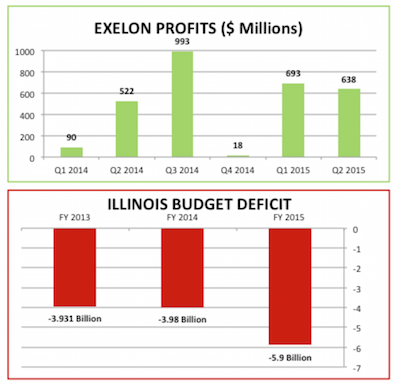 That’s an increase of 22.2% from 2014 - adding up to more than $1.3 BILLION in profit for Exelon so far this year. But Exelon says Illinois legislators should help the company make more. Exelon wants to increase costs on struggling families, businesses and government at a time when human services are being slashed and the state is facing a $6 billion budget deficit.