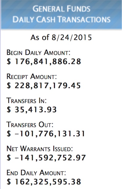 * The state’s checkbook balance as of yesterday…