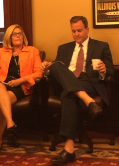 * From left, Sen. Karen McConnaughay (R-St. Charles) and Sen. Matt Murphy (R-No Socks)…