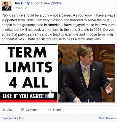 By the way, there are two House Republicans in Duffy’s district. Rep. Ed Sullivan isn’t running again and Rep. Dave McSweeney just told me he is staying put in the House.