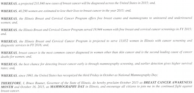 * From a gubernatorial proclamation declaring Breast Cancer Awareness month and Mammography Day…